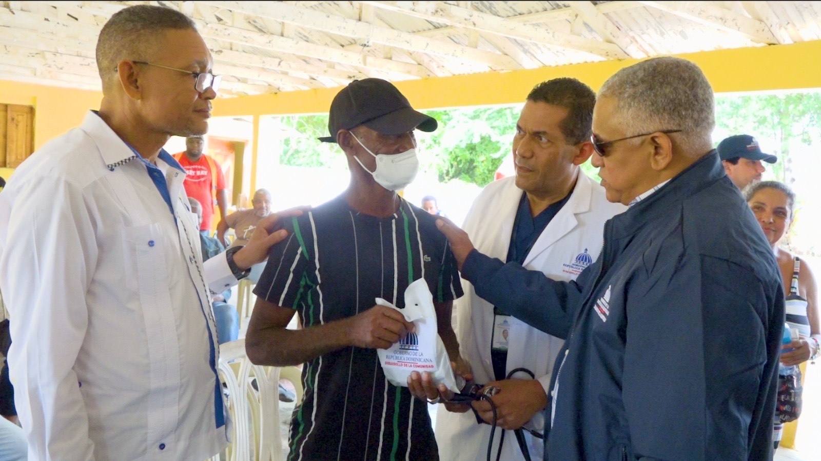 Montecristi-RD. Jornada de asistencia social en la comunidad Copey en Montecristi, donde hubo atenciones médicas, entrega de medicamentos y donación de colchonetas, mosquiteros, equipos y materiales a las asociaciones deportivas y de salud.